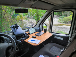 Objectif : fabriquer un bureau ergonomique qui s’emboite dans la boite a gants d’un van aménagé. Ce dernier doit être rapide a installer, solide, et occuper le moins de place possible lorsqu’il est rangé.